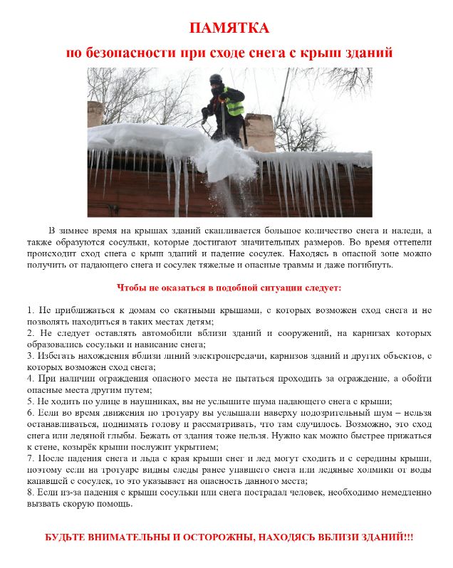 Подписаться на RSSпамятка по безопасности при сходе снега с крыш зданий